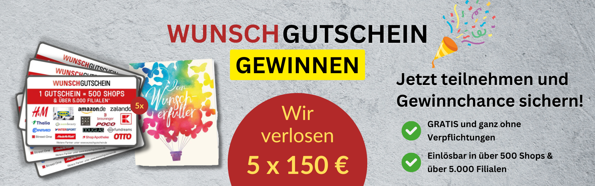 Mit Klick auf „Jetzt Teilnehmen“ nehme ich an dem Gewinnspiel teil. Als Gegenleistung erkläre ich mich mit der Verarbeitung meiner angegebenen Daten (einschließlich freiwilliger Angaben auf Folgeseiten) zum Zwecke der werblichen Ansprache per E-Mail und per Telefon durch die Sovendus GmbH sowie durch die Unternehmen der Sponsorenliste einverstanden.